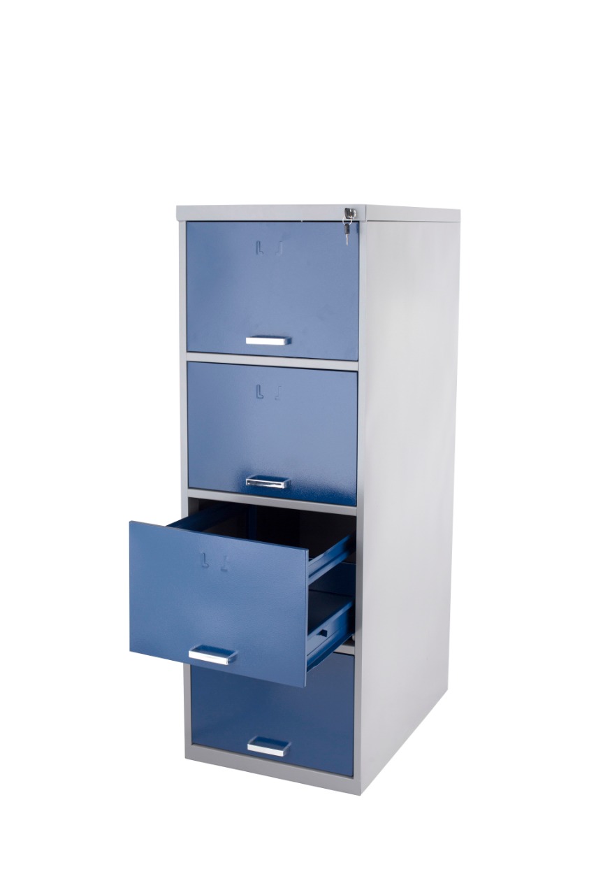 O OF 04 R possui 4 gavetas longas para pasta suspensa, com rolamento, garantindo abertura suave e fácil acesso aos documentos.
