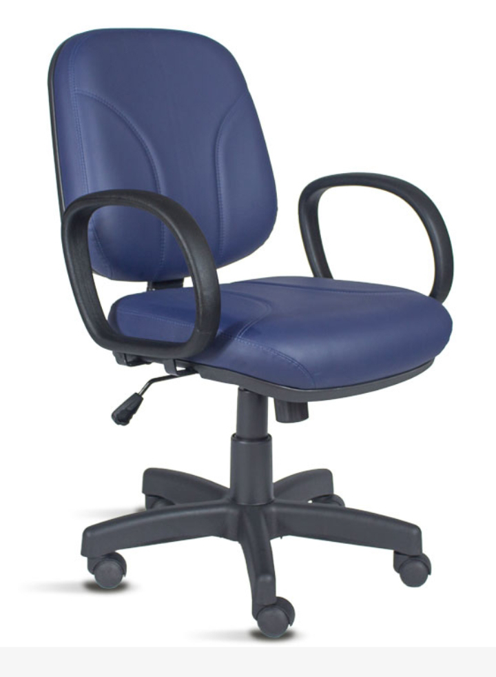 Cadeira de escritório com design confortável e funcional, ideal para uso diário. Possui encosto e assento estofados, apoio para braços, regulagem de altura a gás e base giratória com rodízios, proporcionando praticidade, mobilidade e conforto para ambientes de trabalho.